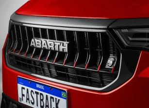 Frente imponente com spoiler dianteiro preto, grade renovada e novas rodas esportivas exclusivas que dominam o asfalto. Seu Fastback Abarth chegou com um visual que intimida até parado.