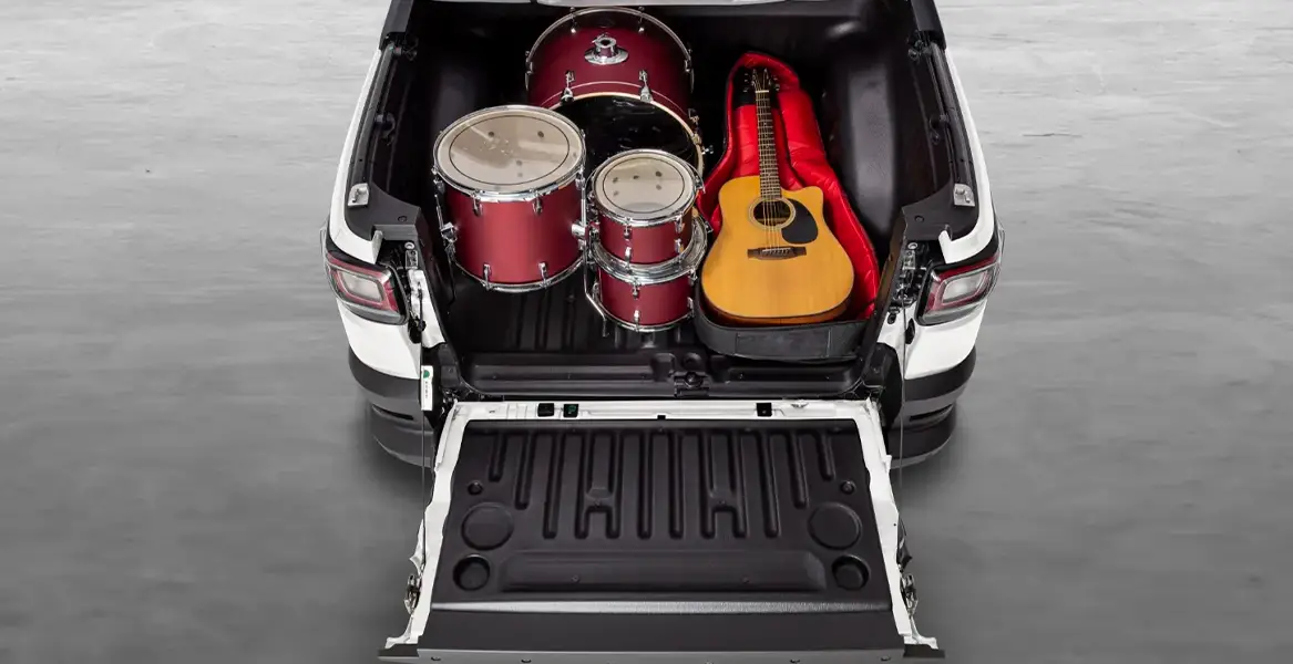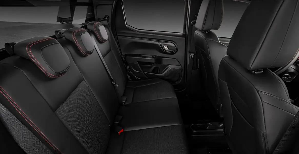 O maior volume de carga da categoria, com 1.354L e capacidade de carga de até 720kg na versão cabine plus, além de volume de 844L e capacidade de até 650kg nas versões cabine dupla turbo automática.